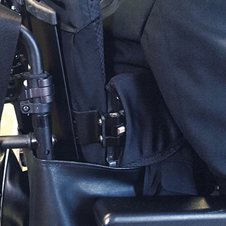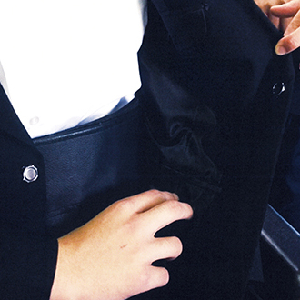 | 綿密な仮縫い・着付けをして、座ったときのシルエットを大切にしながら、見えない所にも車椅子時に身体を固定するための欠かせない機能を多数備えています。今回のフルオーダースーツ製作は私どもにとっても大変勉強になる貴重な経験でした。 | ![]() |