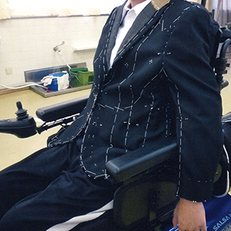 身体の不自由な方のフルオーダースーツを製作させていただきました。 |